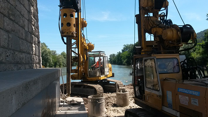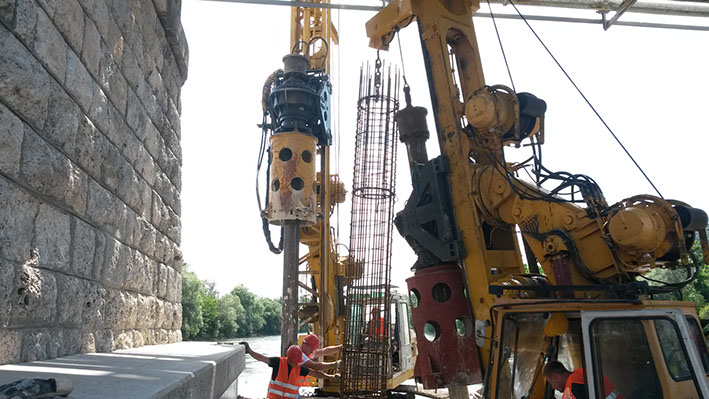 PRIMER: Na objektu HE Brežice – Sanacija mostnega opornika Brežice, smo dokazali, da je pilote mogoče delati tudi na svetli višini pod 8 m. Prvič v Sloveniji so bili tako izvedeni rezani piloti s preklopom več kot 10 cm.