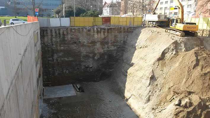 Trikrat sidrana zaščita gradbene jame – globina izkopa 11 m
